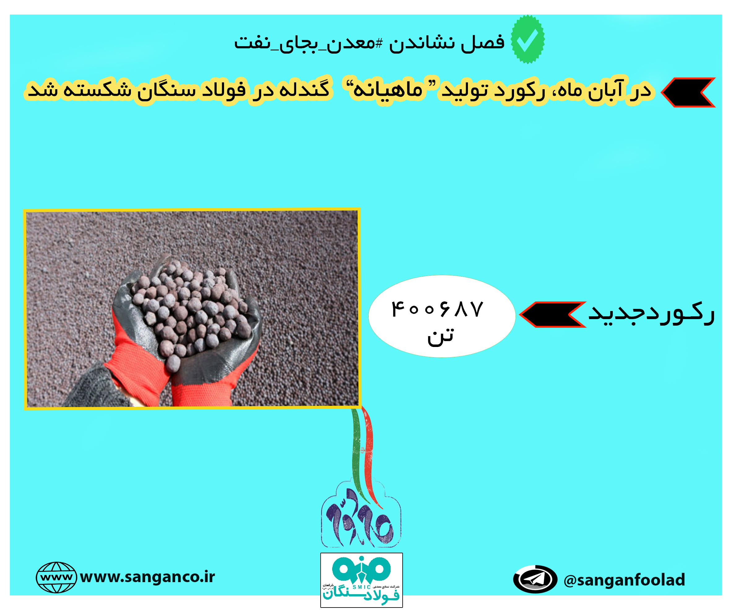 رکورد تولید ” ماهیانه ” گندله در فولاد سنگان شکسته شد.
